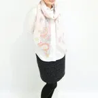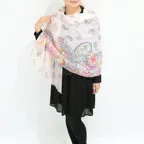 大判サイズのストールで肩から羽織る使い方もできます。春夏の日除けや室内の冷房対策としても使いやすくなっています。