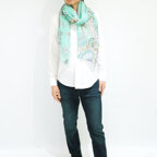 大判サイズのストールで肩から羽織る使い方もできます。春夏の日除けや室内の冷房対策としても使いやすくなっています。