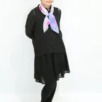 65cm×65cmの小判スカーフで、アスコットタイのようにシャツやブラウスの中におさめて使うこともできます。室内でも巻いたままでいられるので使いやすくなっています。