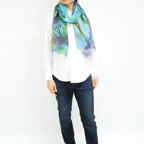 大判サイズのストールで肩から羽織る使い方もできます。春夏の日除けや室内の冷房対策としても使いやすくなっています。