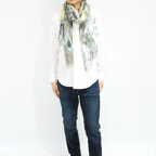 大判サイズのストールで肩から羽織る使い方もできます。春夏の日除けや室内の冷房対策としても使いやすくなっています。