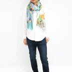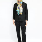 大判サイズのストールで肩から羽織る使い方もできます。春夏の日除けや室内の冷房対策としても使いやすくなっています。