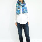 大判サイズのストールで肩から羽織る使い方もできます。春夏の日除けや室内の冷房対策としても使いやすくなっています。