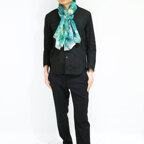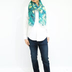 大判サイズのストールで肩から羽織る使い方もできます。春夏の日除けや室内の冷房対策としても使いやすくなっています。