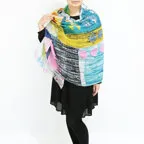 大判サイズのストールで肩から羽織る使い方もできます。春夏の日除けや室内の冷房対策としても使いやすくなっています。