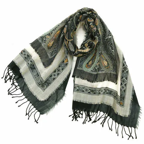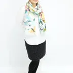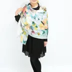 大判サイズのストールで肩から羽織る使い方もできます。春夏の日除けや室内の冷房対策としても使いやすくなっています。