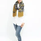 ダイナミックなモチーフを描いた独創的なデザイン。ゆるっと巻くだけでおしゃれな印象になります!