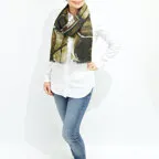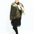 大判サイズのストールで肩から羽織る使い方もできます。春夏の日除けや室内の冷房対策としても使いやすくなっています。