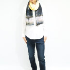 大判サイズのストールで肩から羽織る使い方もできます。春夏の日除けや室内の冷房対策としても使いやすくなっています。