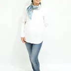 小ぶりなスクエアサイズで、アスコットタイのようにシャツやブラウスの中におさめて使うこともできます。室内でも巻いたままでいられるので使いやすくなっています。