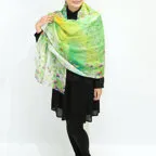 大判サイズのストールで肩から羽織る使い方もできます。春夏の日除けや室内の冷房対策としても使いやすくなっています。