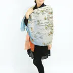 大判サイズのストールで肩から羽織る使い方もできます。春夏の日除けや室内の冷房対策としても使いやすくなっています。