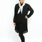 65cm×65cmの小判スカーフで、アスコットタイのようにシャツやブラウスの中におさめて使うこともできます。室内でも巻いたままでいられるので使いやすくなっています。
