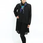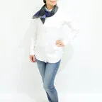 65cm×65cmの小判スカーフで、アスコットタイのようにシャツやブラウスの中におさめて使うこともできます。室内でも巻いたままでいられるので使いやすくなっています。