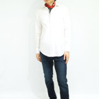 65cm×65cmの小判スカーフで、アスコットタイのようにシャツやブラウスの中におさめて使うこともできます。室内でも巻いたままでいられるので使いやすくなっています。