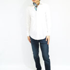 65cm×65cmの小判スカーフで、アスコットタイのようにシャツやブラウスの中におさめて使うこともできます。室内でも巻いたままでいられるので使いやすくなっています。
