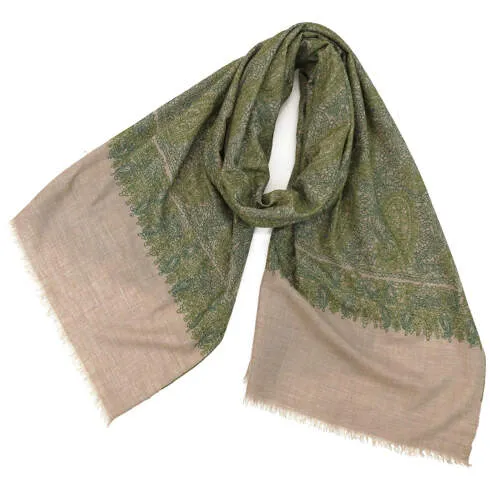 このカシミヤストールには最も繊細なカシミール産カシミヤの毛(パシュミナ)が使われています。そのため手織りカシミヤストールの中でも最も目が細く繊細な生地となっています。薄くて軽くてやわらかく、さらに耐久性も兼ね備えた最上級の一枚です。