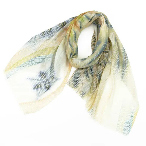 非常に大きなショールサイズで、広げて羽織れば上半身をすっぽりと覆うことができます。縦横の長さも十分にあるため、巻き方の自由度が広がります。程よいボリューム感と立体感を簡単につくることができるため、一巻きでこなれた印象になります。面積もあるので、真夏の室内での冷房対策や膝掛けとしても使いやすくなっています。