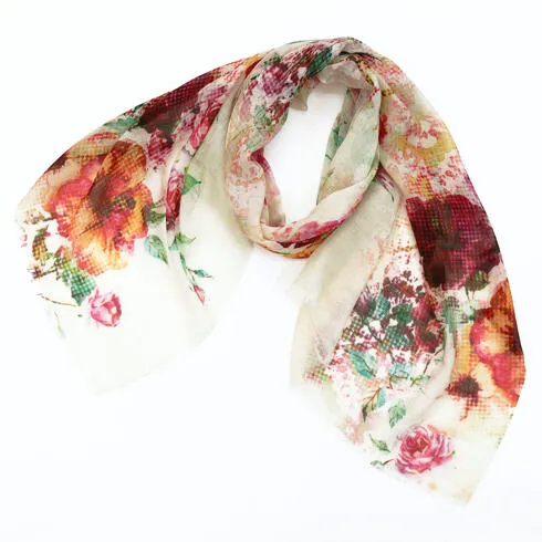 シルク独自の美しい光沢感と爽やかな色使い。軽やかに品格を語る、ドラマチックストールです。