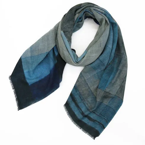 高級シルクが織りなす、麗しのジャカードストール。トーンが異なるブルーベースの色糸のコンビネーションが絶妙な一枚です。