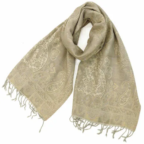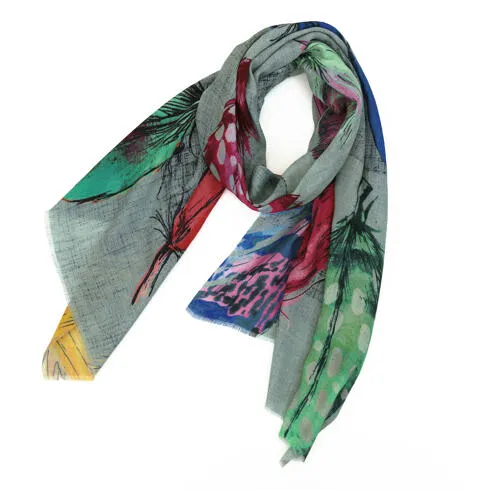 スタンダートな大判サイズで巻いても羽織っても、どちらも使いやすいタイプです。特に羽織は全体の印象がパッと華やかに、エレガントな雰囲気に変化します。