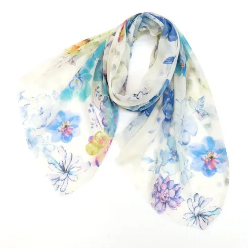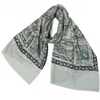 190cm×67cmのスタンダードな大判サイズで、巻きでも羽織でもどちらも使いやすいストールです。特に羽織は全面に施された刺繍が美しく輝き、サッとあしらうだけでエレガントな雰囲気に変化します。ドレスや着物などの羽織物としても重宝します。