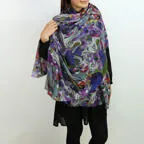 スタンダードな大判サイズで巻きでも羽織でもどちらも使いやすいストールです。特に羽織はパッと全体の印象を大きく変えることができます。