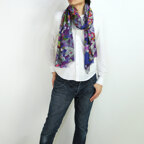 スタンダードな大判サイズで巻きでも羽織でもどちらも使いやすいストールです。特に羽織はパッと全体の印象を大きく変えることができます。