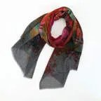 上質素材に独創的な幾何学柄をプリントしたストール。多色使いなのでアレンジしやすく、一枚あるだけでおしゃれの幅がぐっと広がります!