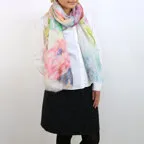 春夏にぜひおすすめしたい、さらさら肌ざわりが魅力のストール。多色使いなので様々な装いに合わせやすく、アレンジのしやすさも魅力です。