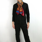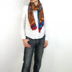 色使いが際立つ、モダンなペイズリー柄ストール。どうしても暗く重くなりがちな秋冬ファッションのアクセントに最適です。