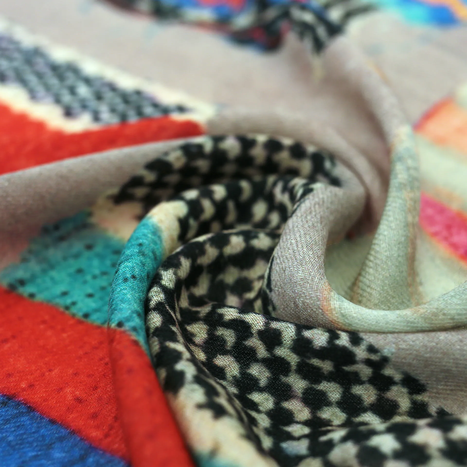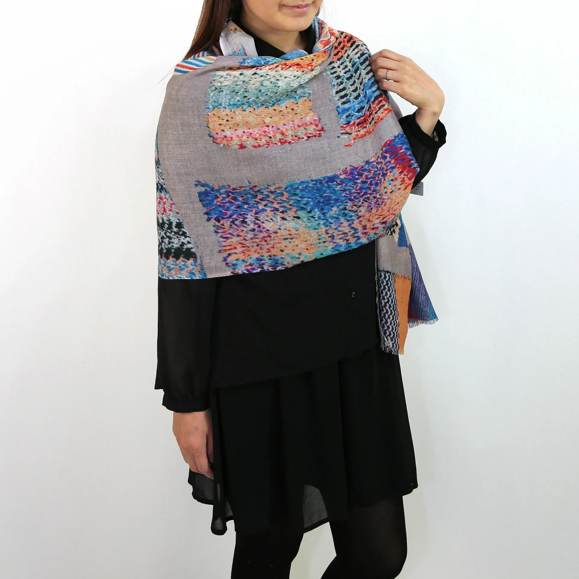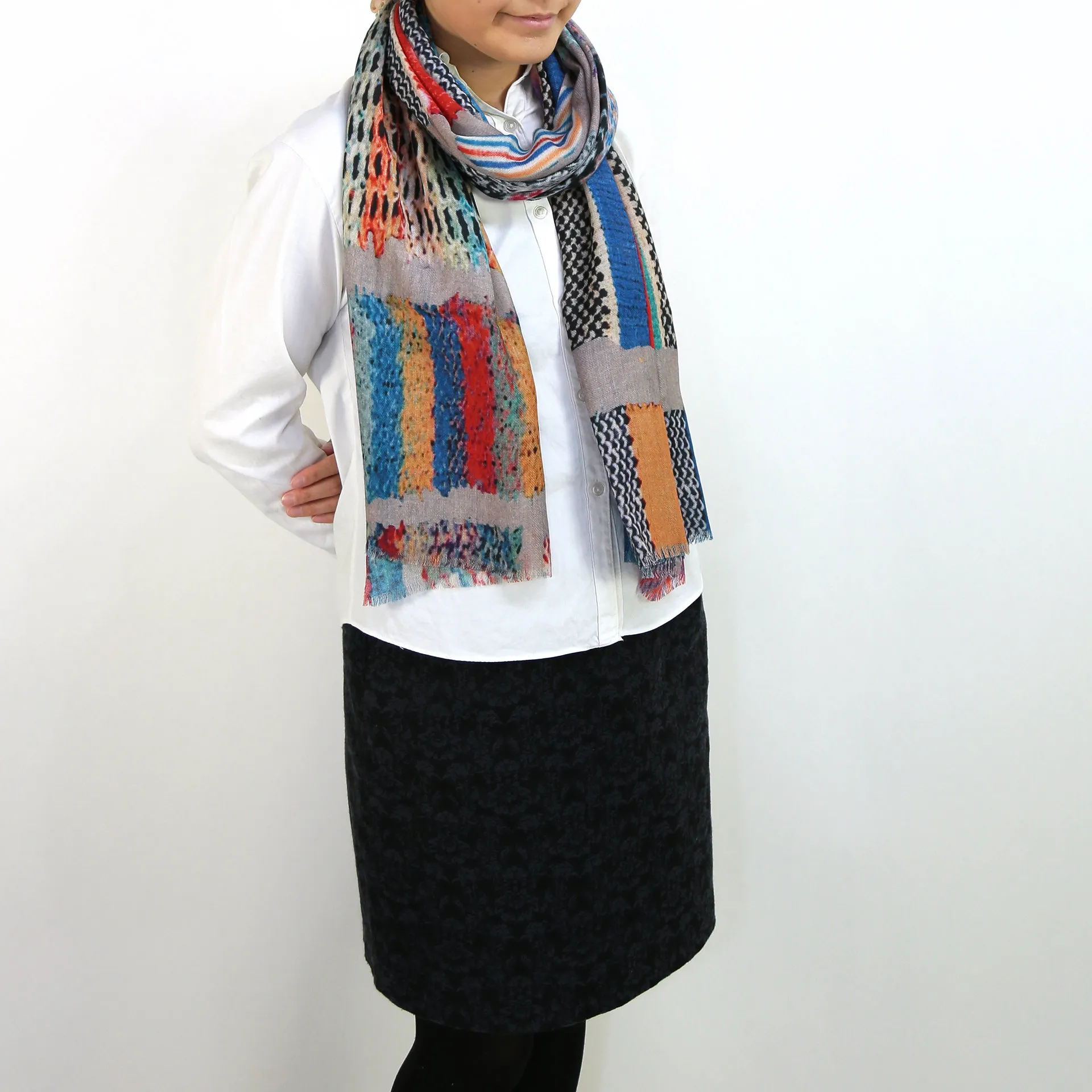 モダンでカラフルな色使い。確かな上質感を伝える生地。ゆるりと巻くだけでいつものスタイルがたちまちお洒落に!