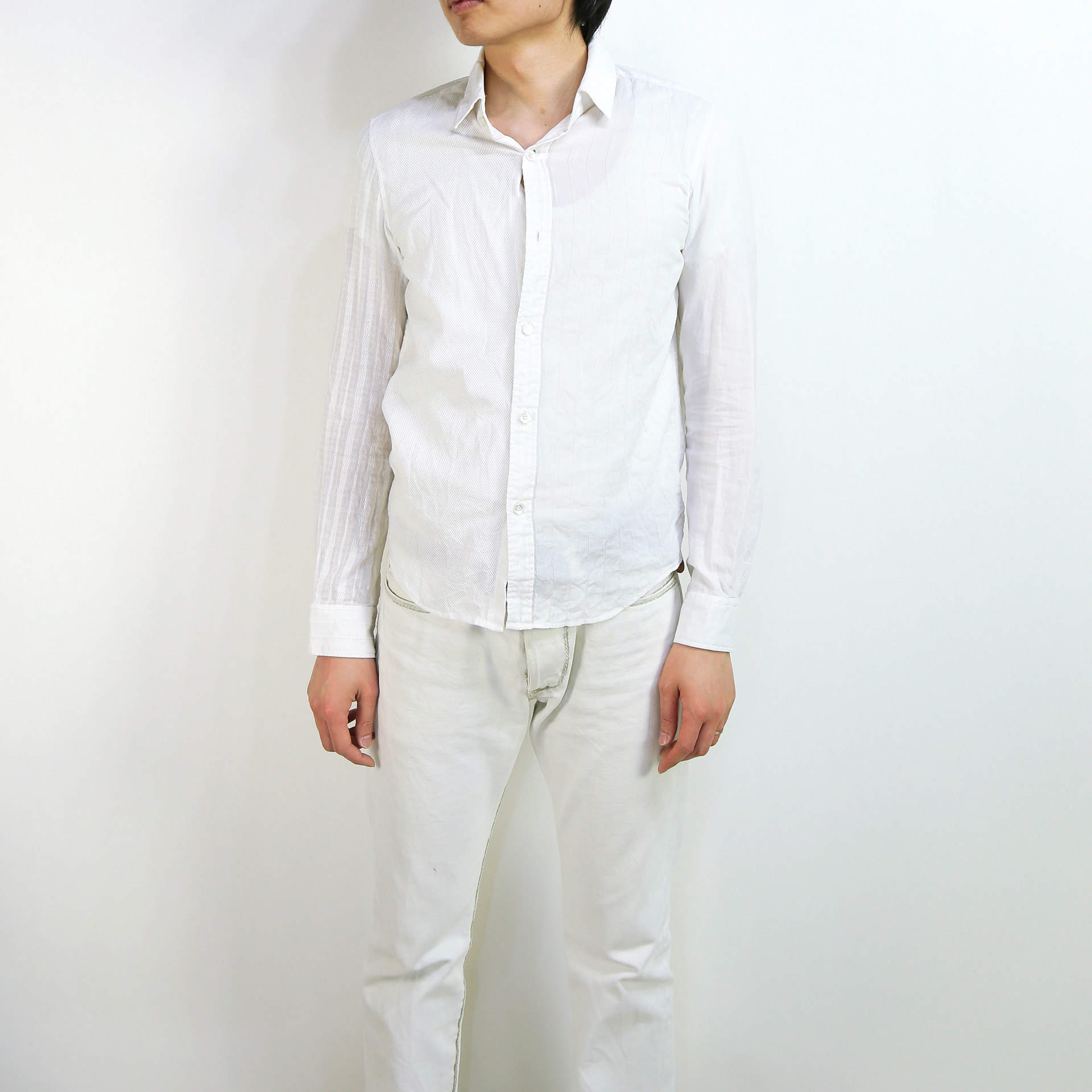 横糸、縦糸共に非常に細い糸を使っています。軽いので身につけていてストレスを感じたり、肩がこることもありません。