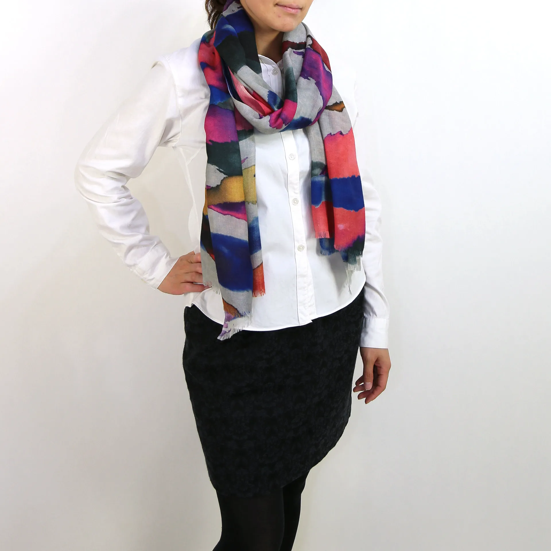 上質ウールシルクならではの発色の美しさに心が踊る。さえざえとした色使いで装いのアクセントに最適です!