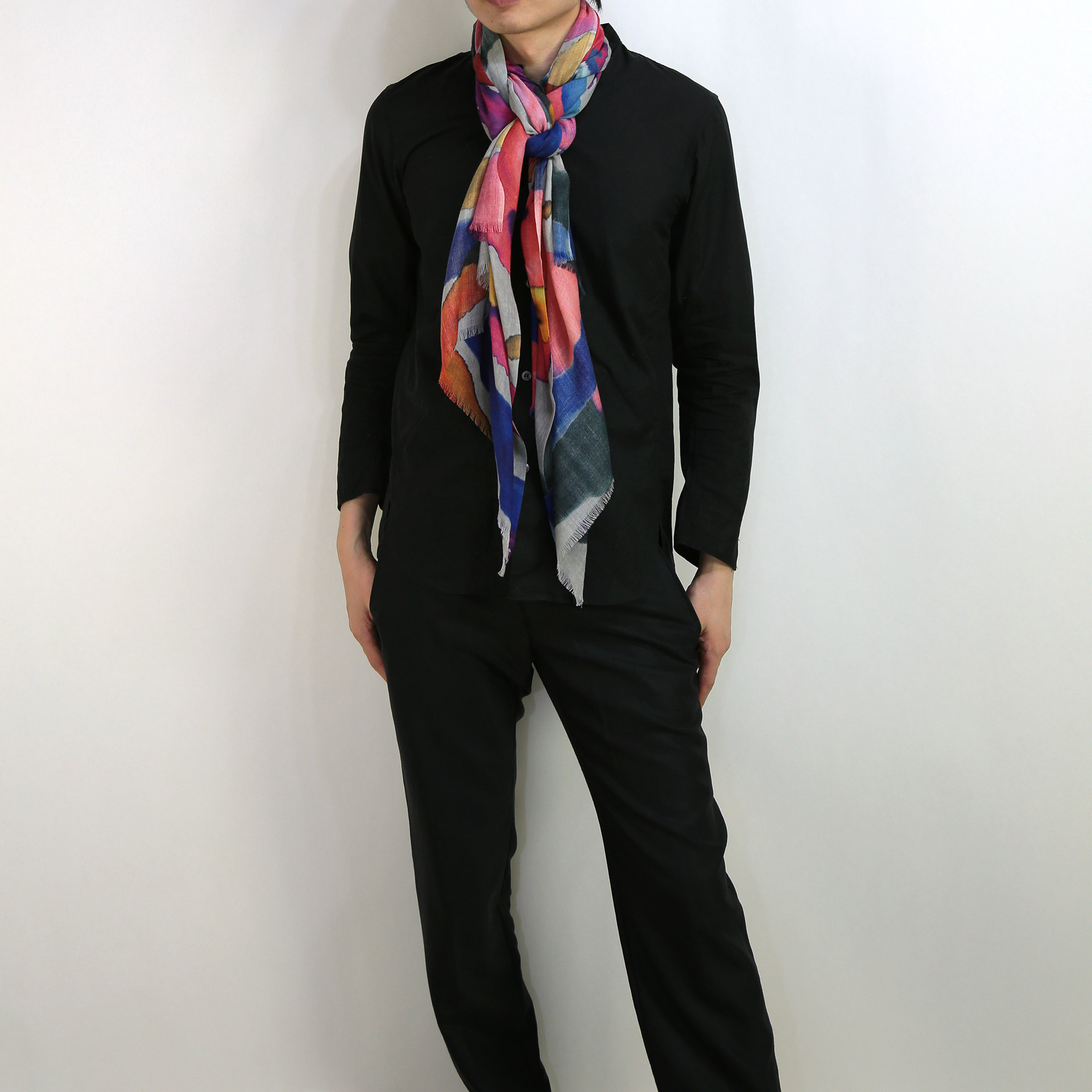 スタンダードな大判サイズで、巻きだけでなく羽織でも使いやすいタイプです。特に羽織は上半身をすっぽりと覆えるため、ファッション全体の印象を大きく変えてくれます。