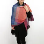 非常に大きなショールサイズで、広げて羽織れば上半身をすっぽりと覆うことができます。縦横の長さも十分にあるため、巻き方の自由度が広がります。程よいボリューム感と立体感を簡単につくることができるため、一巻きでこなれた印象になります。面積もあるので、真夏の室内での冷房対策や膝掛けとしても使いやすくなっています。