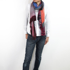 生地感よりカジュアルな普段使いにも、少しフォーマルなシーンでも使いやすいタイプです。スタイルや場所を問わず合わせることができる優れたストールです。
