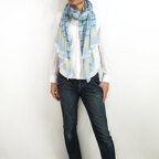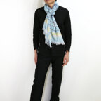 大判ショールサイズで肩から羽織る使い方にも適しています。ゆるっと巻くだけで立体感を作りやすく、ほどよいボリュームも出すことができます。春夏の日除けや冷房対策としても使いやすく、ファッションのアクセントとしてなら一年中使うことができます。