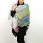 大判サイズのストールで肩から羽織る使い方もできます。春夏の日除けや室内の冷房対策としても使いやすくなっています。