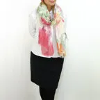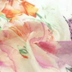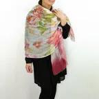 モダンアートのような花柄が華やか!街に、旅に、いつも連れて歩きたいリネンストールの出番です。