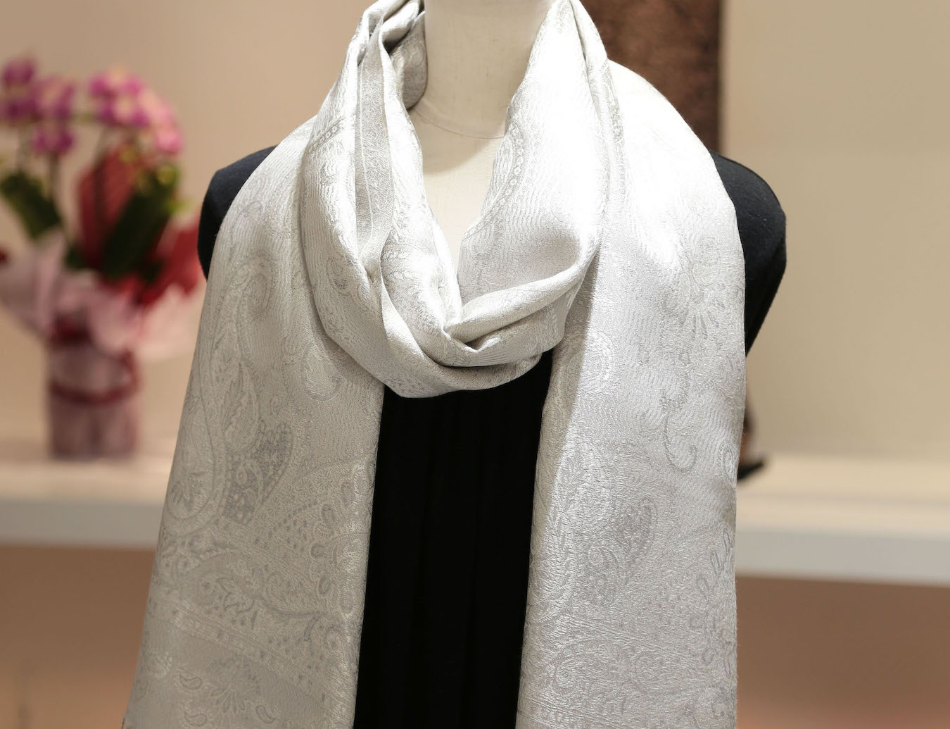 シルクの品のよい光沢感と繊細で美しいデザインが装いに洗練された印象を与えてくれます。