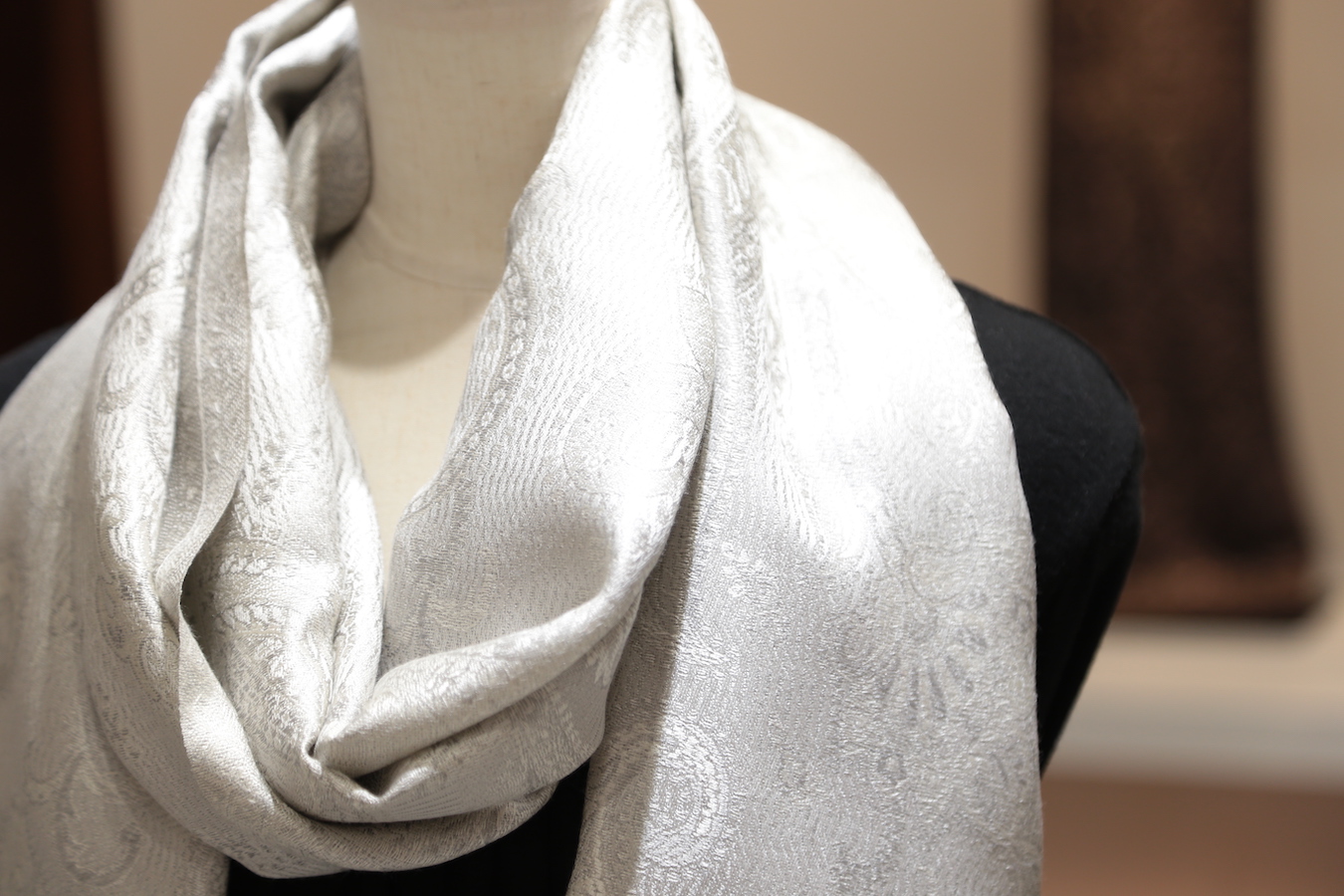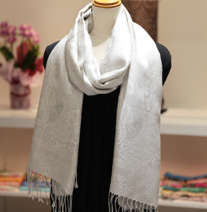 シルクは代表的な通年素材です。春・秋・冬は防寒とファッションのアクセントに、夏は日除けや冷房対策に。使い方を変えて一年中使うことができます。さらに強度も高く、化学繊維に劣らない強さを持っているため、非常に長く使うことができる優れたストールです。
