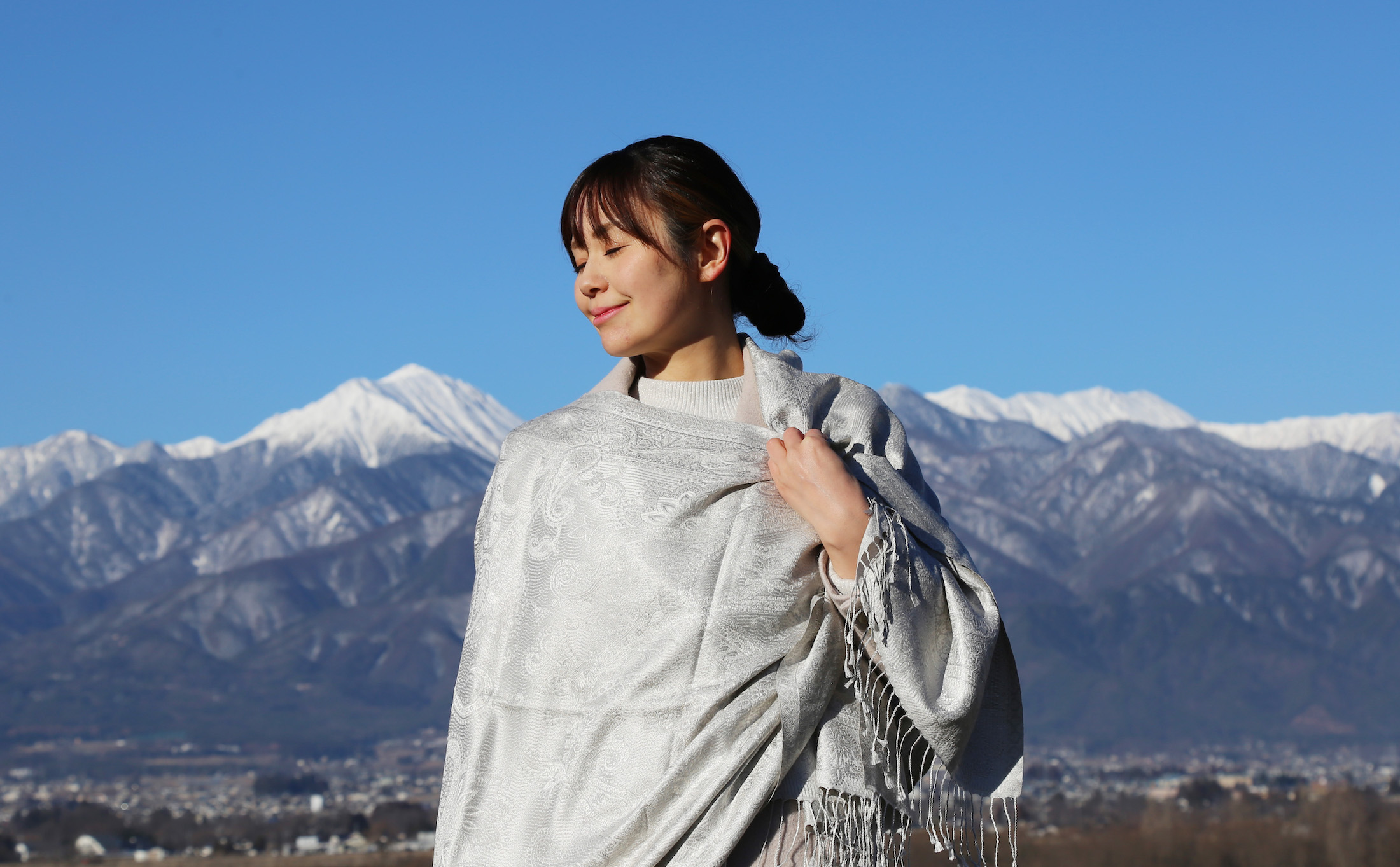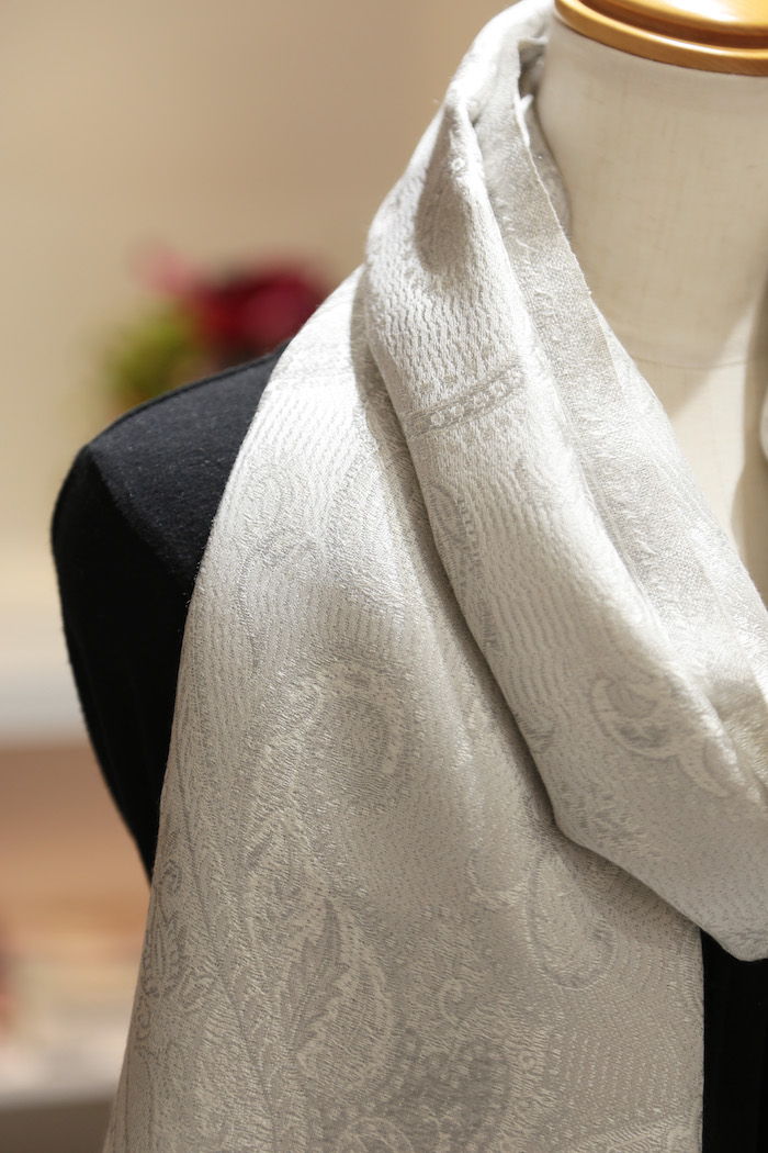 和装とも相性が良く、さらにアクセントとしてならカジュアルな装いにも合わせやすい、とても使い勝手の良いストールです。