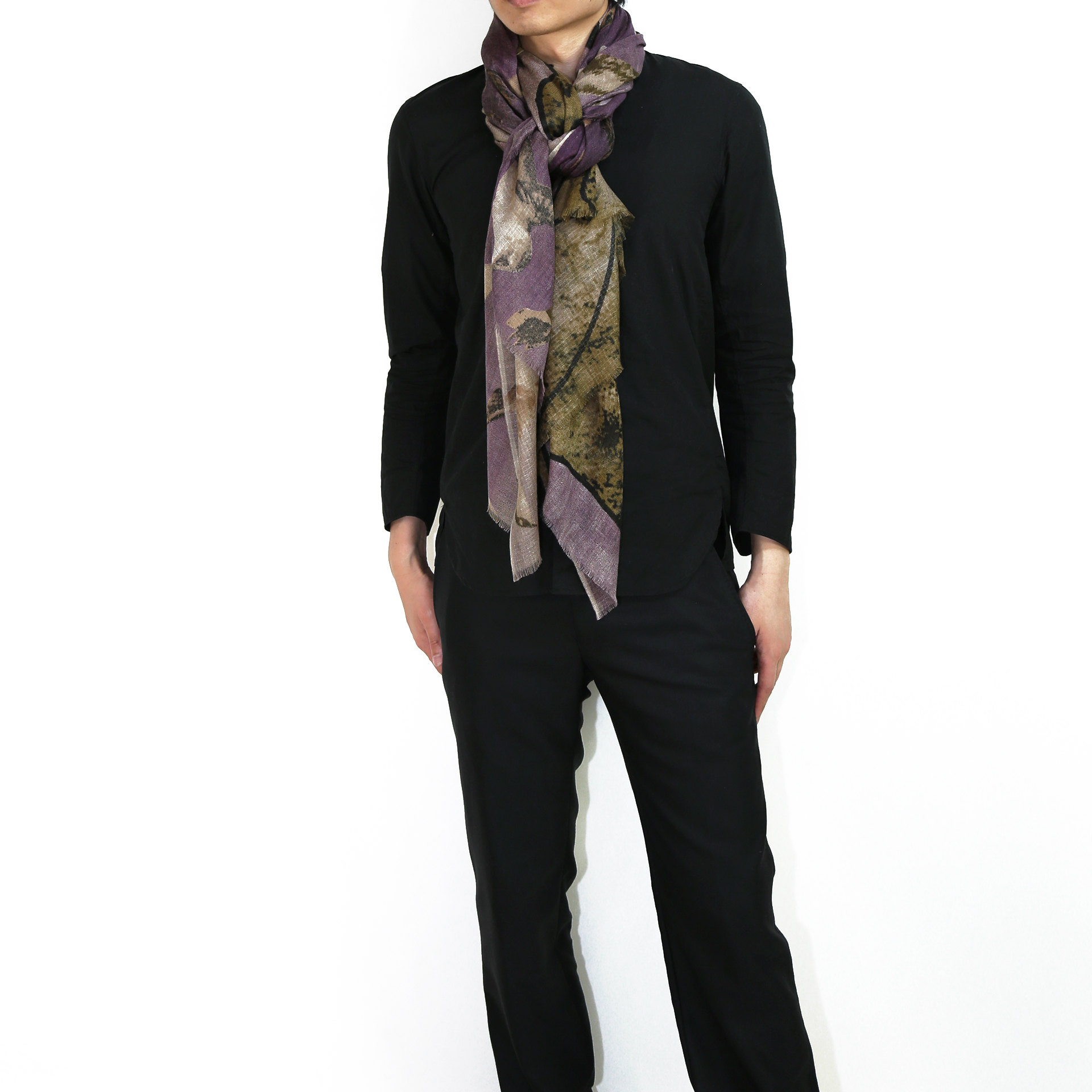 薄手の生地としなやかな風合いでボリュームを抑えてシャープに身につけることもできます。複雑な巻き方でも取り回ししやすく、さまざまな巻き方でおしゃれを楽しめます。