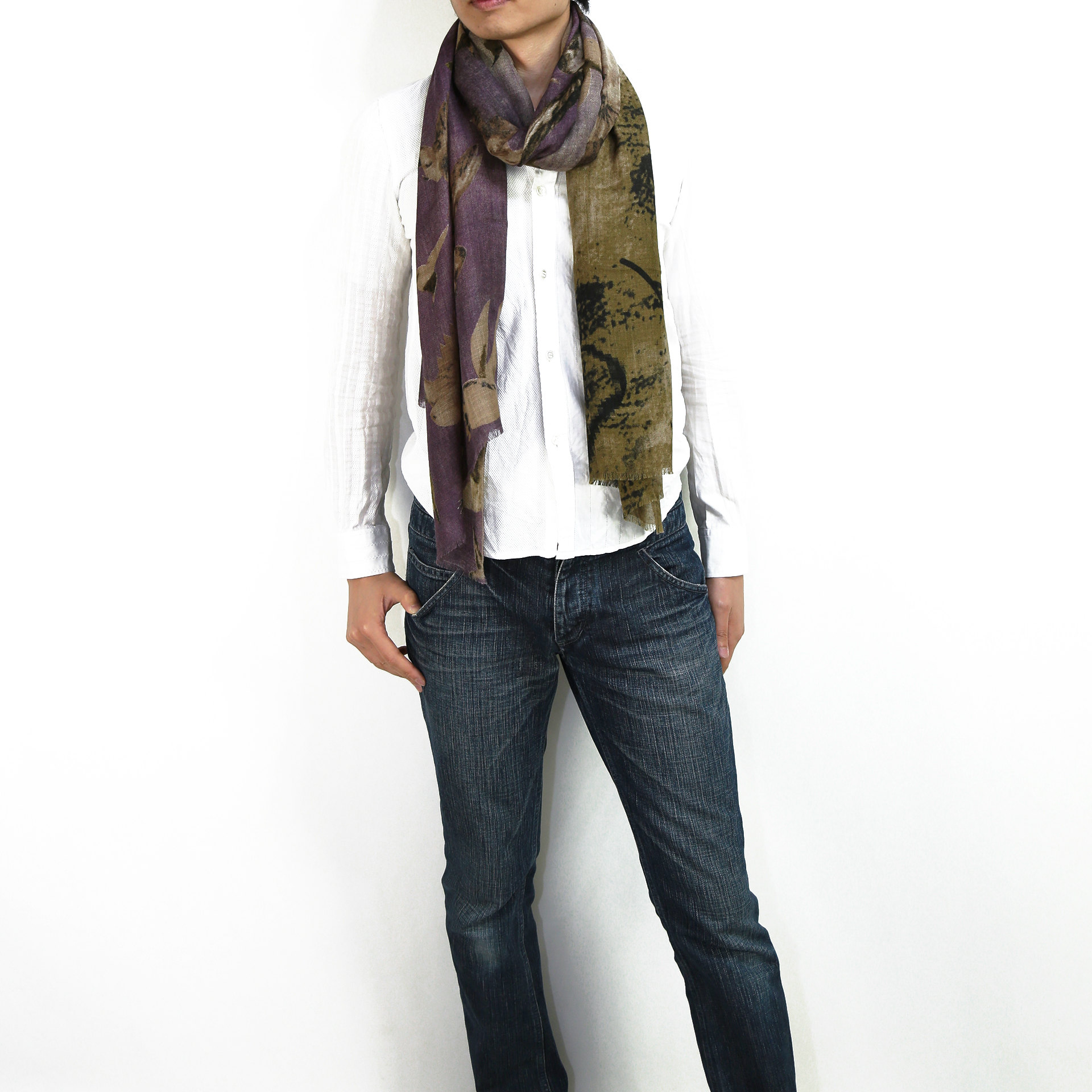 生地感よりカジュアルな普段使いにも、少しフォーマルなシーンでも使いやすいタイプです。スタイルや場所を問わず合わせることができる優れたストールです。