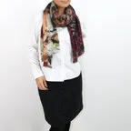 非常に大きなショールサイズで、広げて羽織れば上半身をすっぽりと覆うことができます。縦横の長さも十分にあるため、巻き方の自由度が広がります。程よいボリューム感と立体感を簡単につくることができるため、一巻きでこなれた印象になります。面積もあるので、真夏の室内での冷房対策や膝掛けとしても使いやすくなっています。