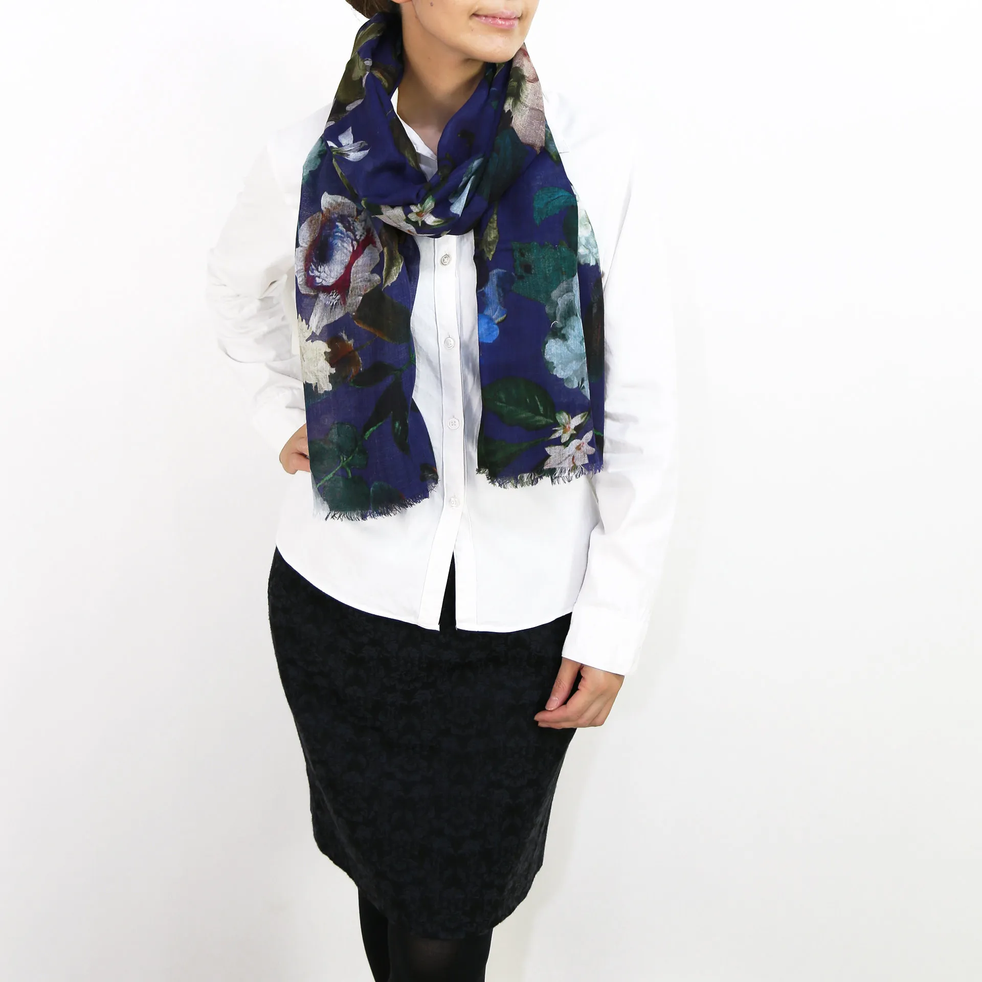 生地感よりカジュアルな普段使いにも、少しフォーマルなシーンでも使いやすいタイプです。スタイルや場所を問わず合わせることができる優れたストールです。