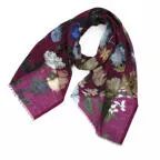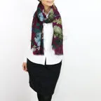 甘さ控えめ。凛と美しいウールシルクストール。女らしさを象徴するような繊細なフラワーモチーフが印象的な一枚です。