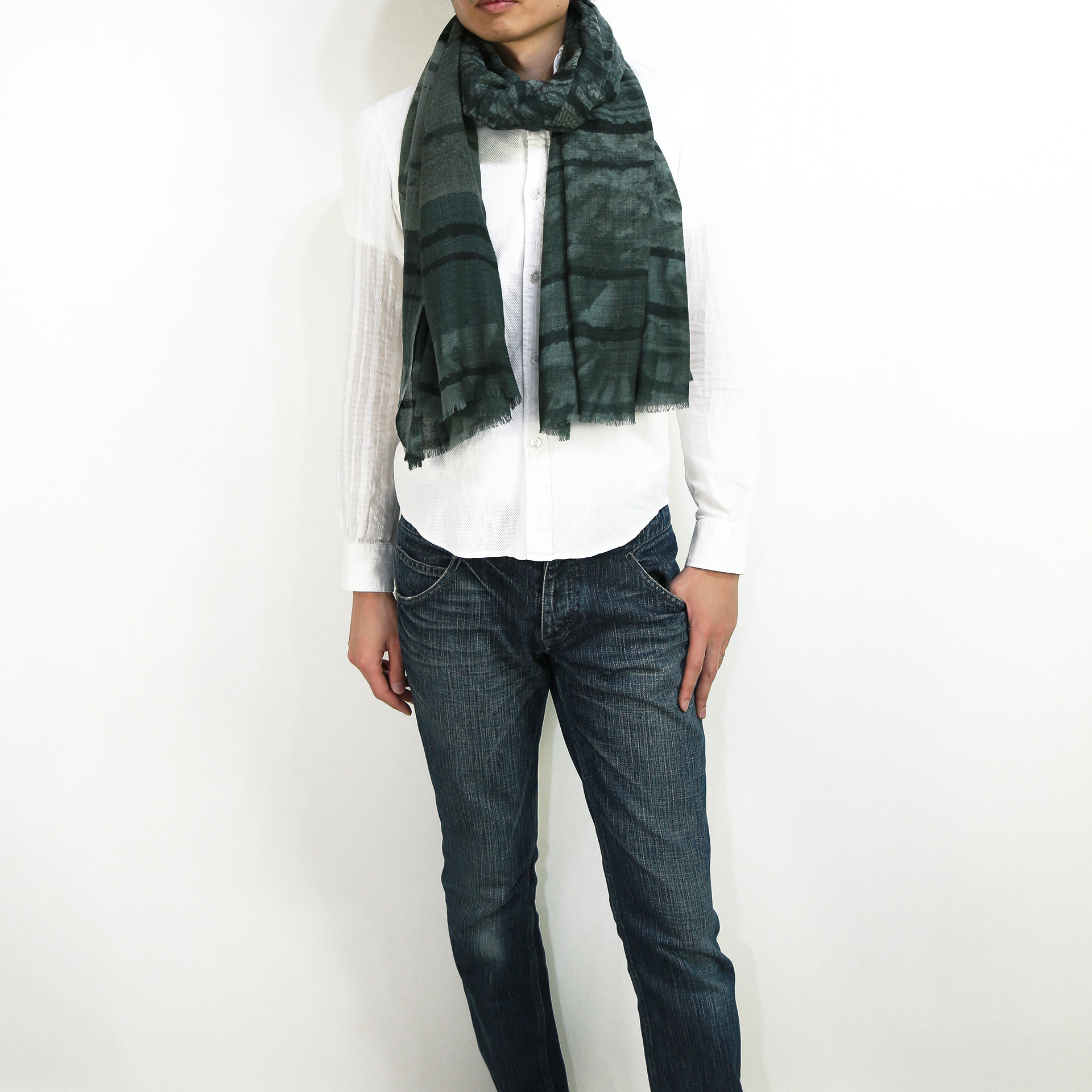 生地感よりカジュアルな普段使いにも、少しフォーマルなシーンでも使いやすいタイプです。スタイルや場所を問わず合わせることができる優れたストールです。