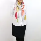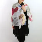 大判サイズのストールで肩から羽織る使い方もできます。春夏の日除けや室内の冷房対策としても使いやすくなっています。
